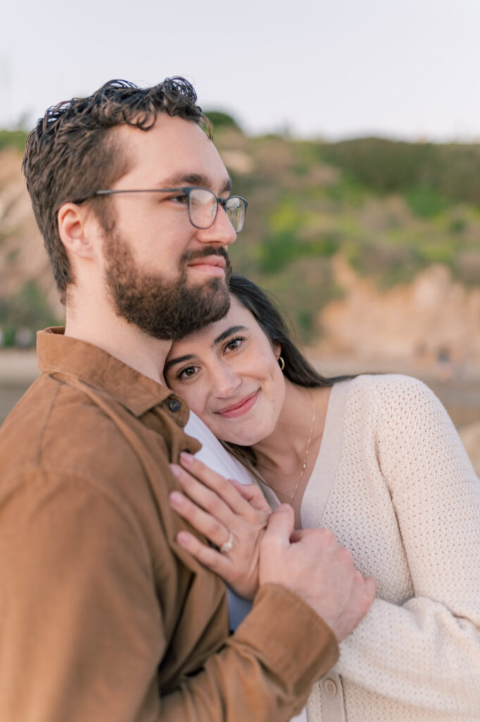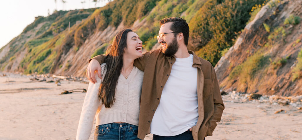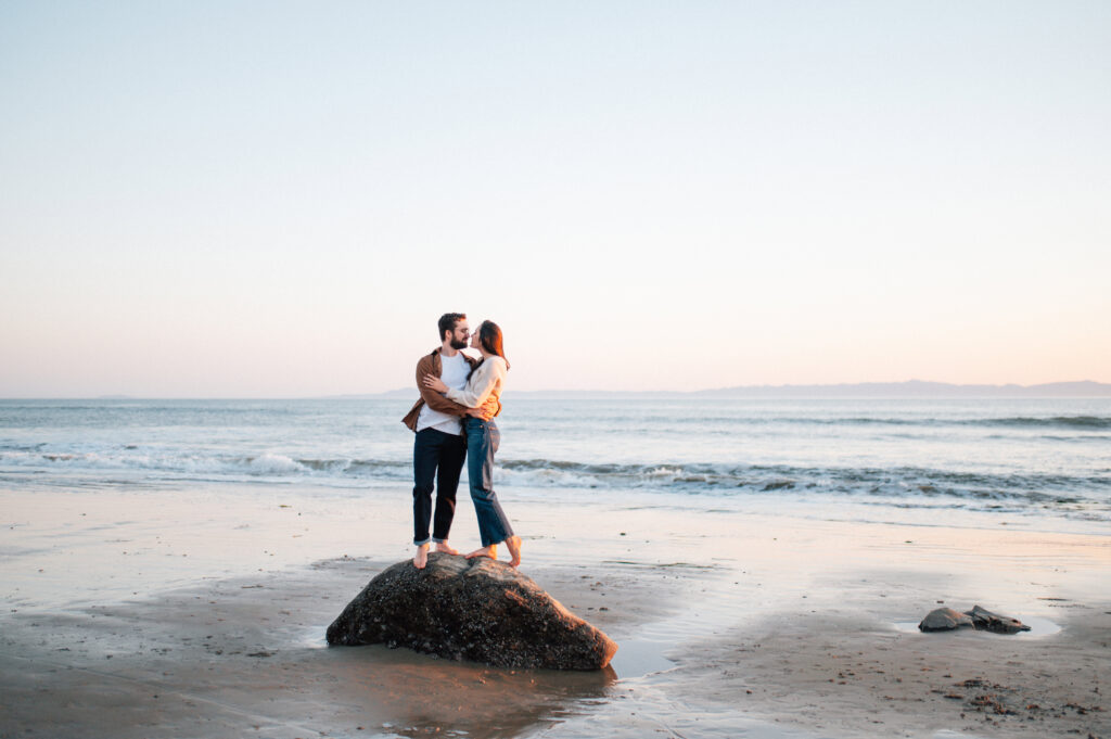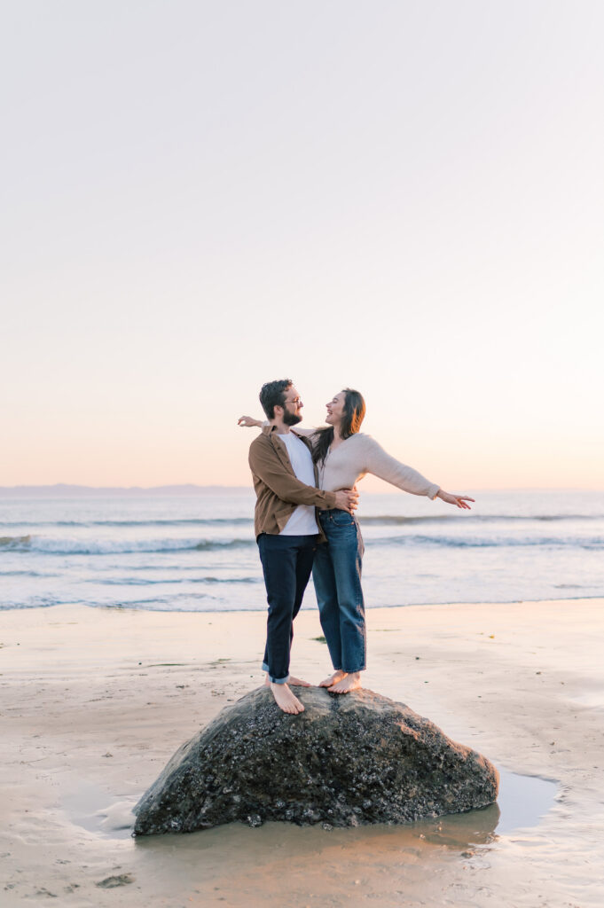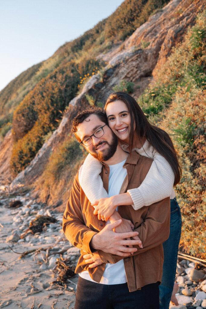 As golden hour settled over Arroyo Burro Beach, the cliffs began to glow and the water reflected warm light across the shoreline. Santa Barbara beaches have a way of turning simple moments into something cinematic, and this evening was no exception. Their laughter carried over the sound of the waves, and the entire session felt easy.